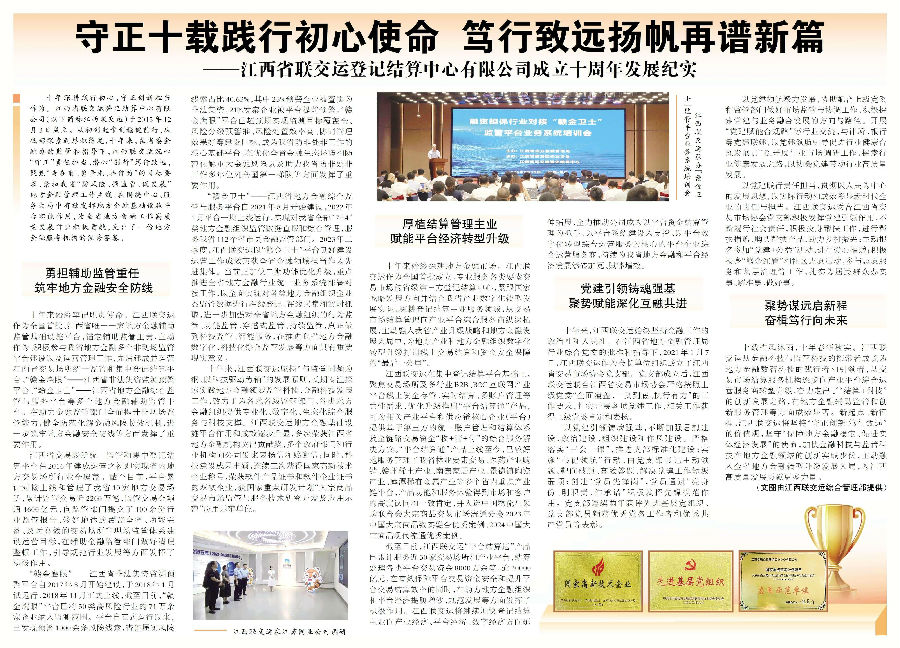江西日?qǐng)?bào):守正十載踐行初心使命 篤行致遠(yuǎn)揚(yáng)帆再譜新篇 | 江西省聯(lián)交運(yùn)登記結(jié)算中心有限公司成立十周年發(fā)展紀(jì)實(shí)