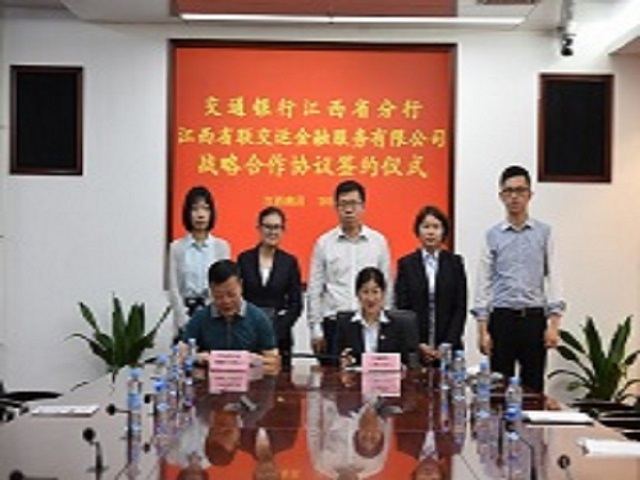 2016年8月10日,江西省聯(lián)交運(yùn)金融服務(wù)有限公司(以下簡(jiǎn)稱“江西聯(lián)交運(yùn)”)與廣發(fā)銀行股份有限公司南昌分行(以下簡(jiǎn)稱“廣發(fā)銀行南昌分行”)舉行戰(zhàn)略合作協(xié)議簽約儀式。廣發(fā)銀行南昌分行副行長(zhǎng)趙峰林、公司部總經(jīng)理黃佳歡、營(yíng)業(yè)部總經(jīng)理王海及江西聯(lián)交運(yùn)總經(jīng)理劉祖國(guó)等出席儀式。