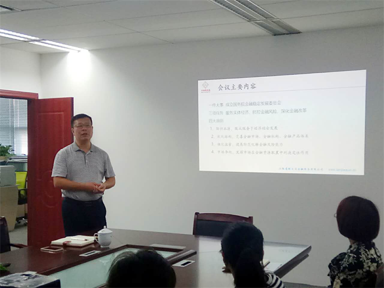 在內(nèi)部交流環(huán)節(jié),江西聯(lián)交運(yùn)總經(jīng)理劉祖國(guó)以“保障地方金融穩(wěn)定,促進(jìn)實(shí)體經(jīng)濟(jì)發(fā)展”為題作主旨發(fā)言。并以“超前謀劃 江西聯(lián)交運(yùn)創(chuàng)新設(shè)立、砥礪前行 基礎(chǔ)夯實(shí)成效初顯、轉(zhuǎn)型跨越 主動(dòng)作為共贏未來(lái)”為重點(diǎn)就公司成立背景、工作成效、發(fā)展規(guī)劃等內(nèi)容向與會(huì)人員進(jìn)行了詳細(xì)介紹。