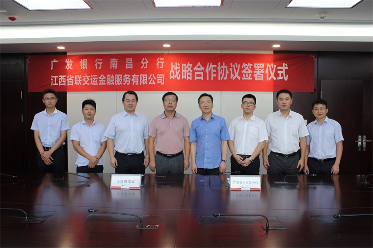 2016年8月10日,江西省聯(lián)交運金融服務(wù)有限公司(以下簡稱“江西聯(lián)交運”)與廣發(fā)銀行股份有限公司南昌分行(以下簡稱“廣發(fā)銀行南昌分行”)舉行戰(zhàn)略合作協(xié)議簽約儀式。廣發(fā)銀行南昌分行副行長趙峰林、公司部總經(jīng)理黃佳歡、營業(yè)部總經(jīng)理王海及江西聯(lián)交運總經(jīng)理劉祖國等出席儀式。