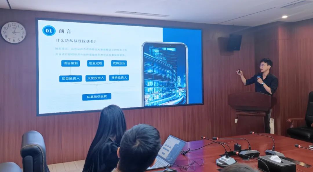 會上,王瑋以基礎(chǔ)知識講解和案例介紹相結(jié)合方式,分別從私募股權(quán)基金的起源與發(fā)展、運作模式與特點、常用的估值方式以及其在經(jīng)濟(jì)中發(fā)揮的作用等多方面進(jìn)行詳細(xì)介紹。讓大家對私募股權(quán)基金的基礎(chǔ)結(jié)構(gòu)、股權(quán)投資“募投管退”及當(dāng)前國內(nèi)市場的發(fā)展趨勢和社會經(jīng)濟(jì)效益等有了更系統(tǒng)和清晰的認(rèn)識了解。在分享介紹后,與會人員并結(jié)合各自學(xué)習(xí)工作經(jīng)驗就部分重點內(nèi)容和問題進(jìn)行了補充發(fā)言與討論交流。